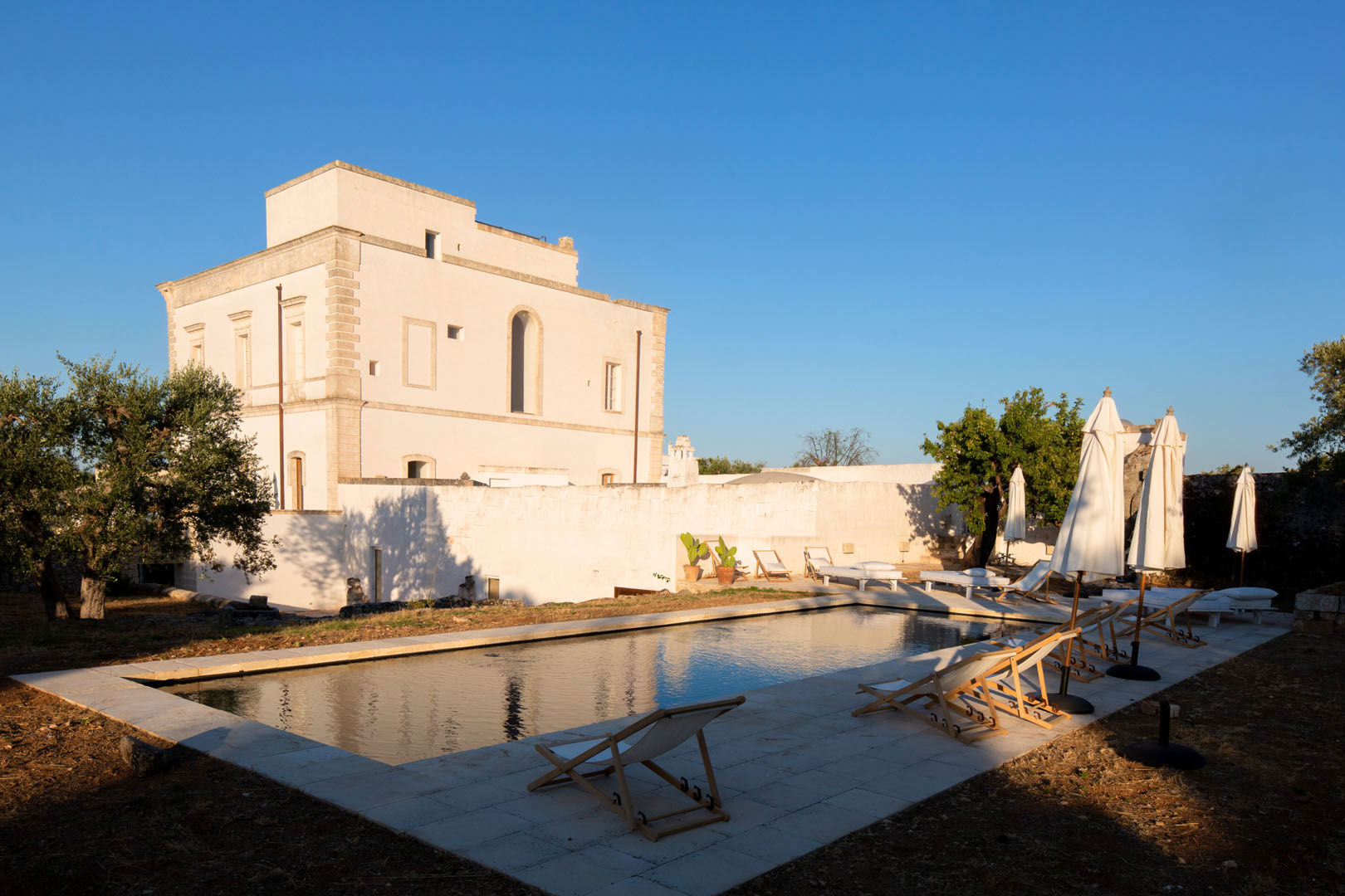 Circondata da pietra naturale e angoli di quiete, la piscina di Masseria Monet è uno spazio riservato dove il tempo rallenta e la luce del Sud accarezza i sensi. Il solarium adiacente consente di vivere il sole in totale privacy, trasformando ogni momento in un’esperienza di calma assoluta, immersi tra natura e memoria.